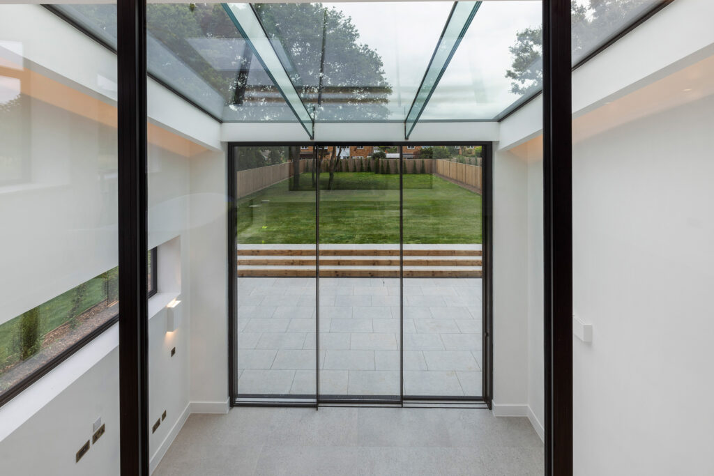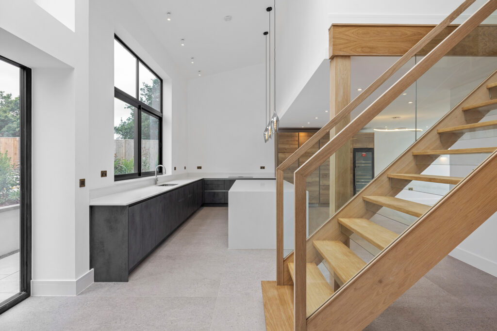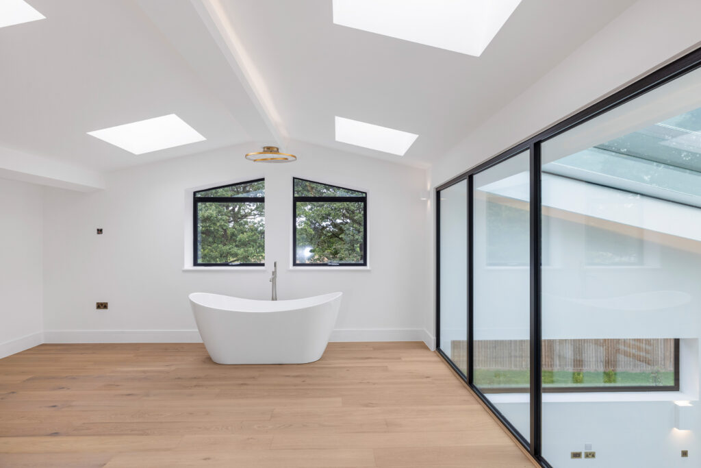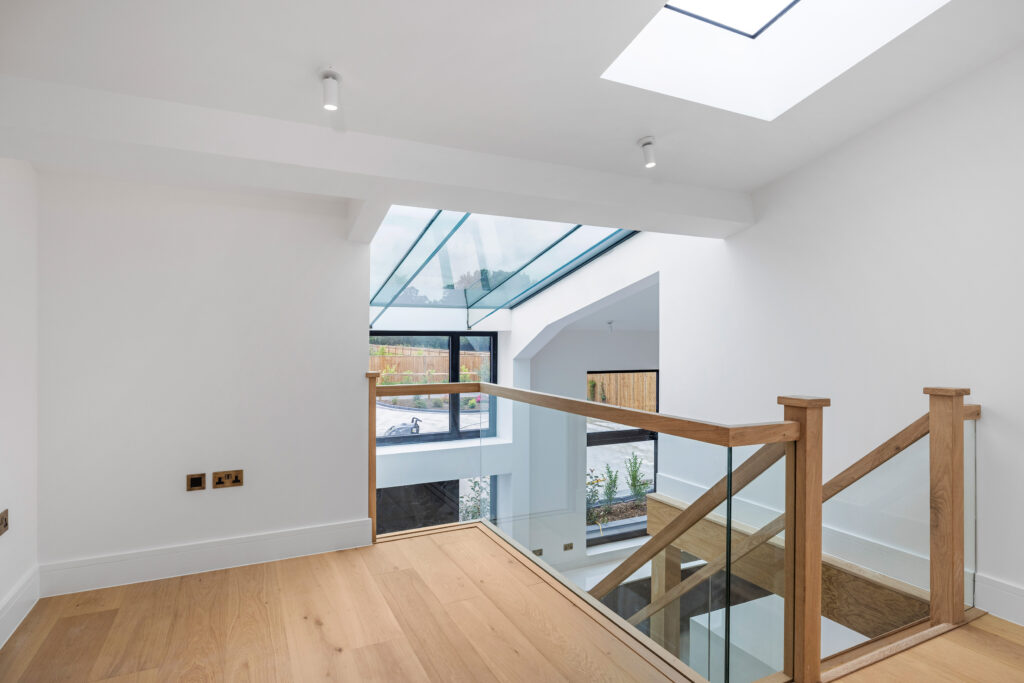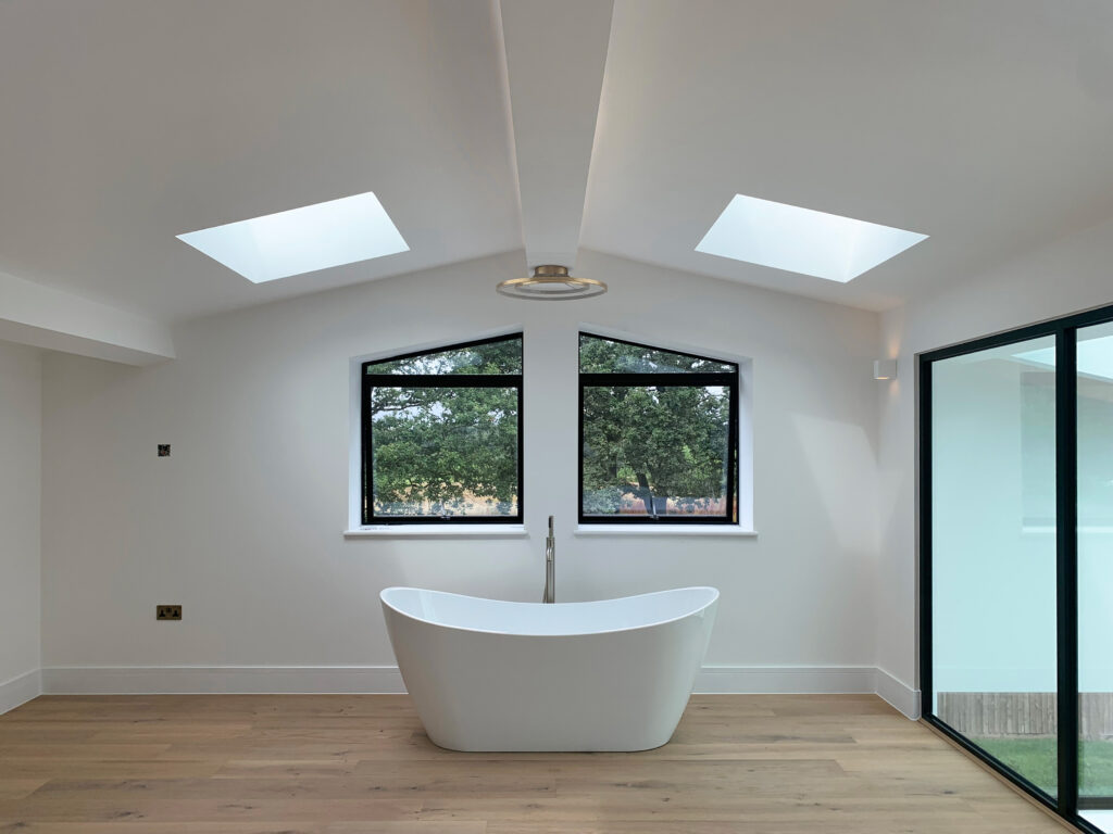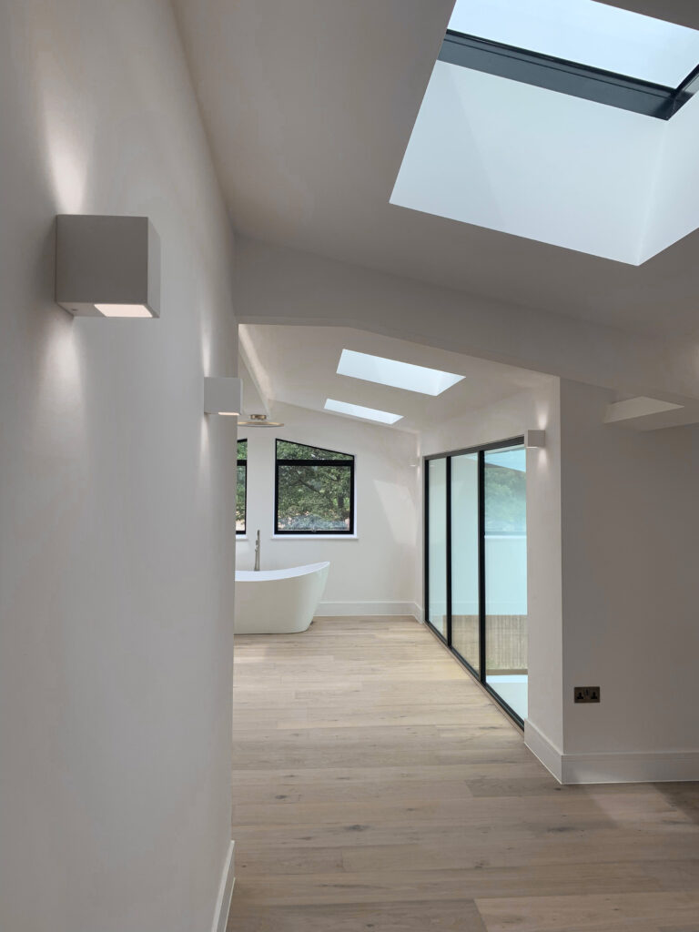 Our commitment to sustainability and energy efficiency shines through in every aspect of this transformation. All the glazing incorporates solar protection, maintaining a comfortable temperature even with extensive glass surfaces. We embraced green design principles by implementing air source heat pumps and a comprehensive foul drainage and stormwater filtration system. The result is a self-sustaining eco-friendly solution that ensures clean water discharge to the nearby wooded area, further preserving the natural beauty of the surroundings.