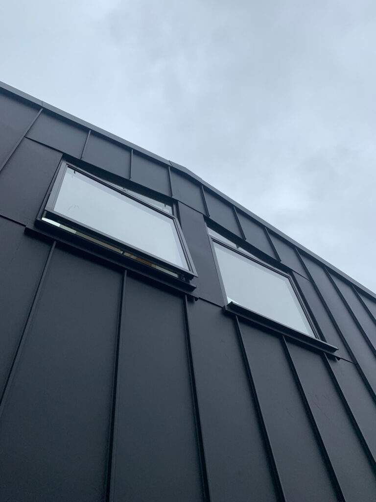Revitalising a dated office building by optimising natural light, modernising the exterior with black-framed windows, and collaboratively crafting an elegant interior with unique features, creating a harmonious blend of historical charm and contemporary functionality.