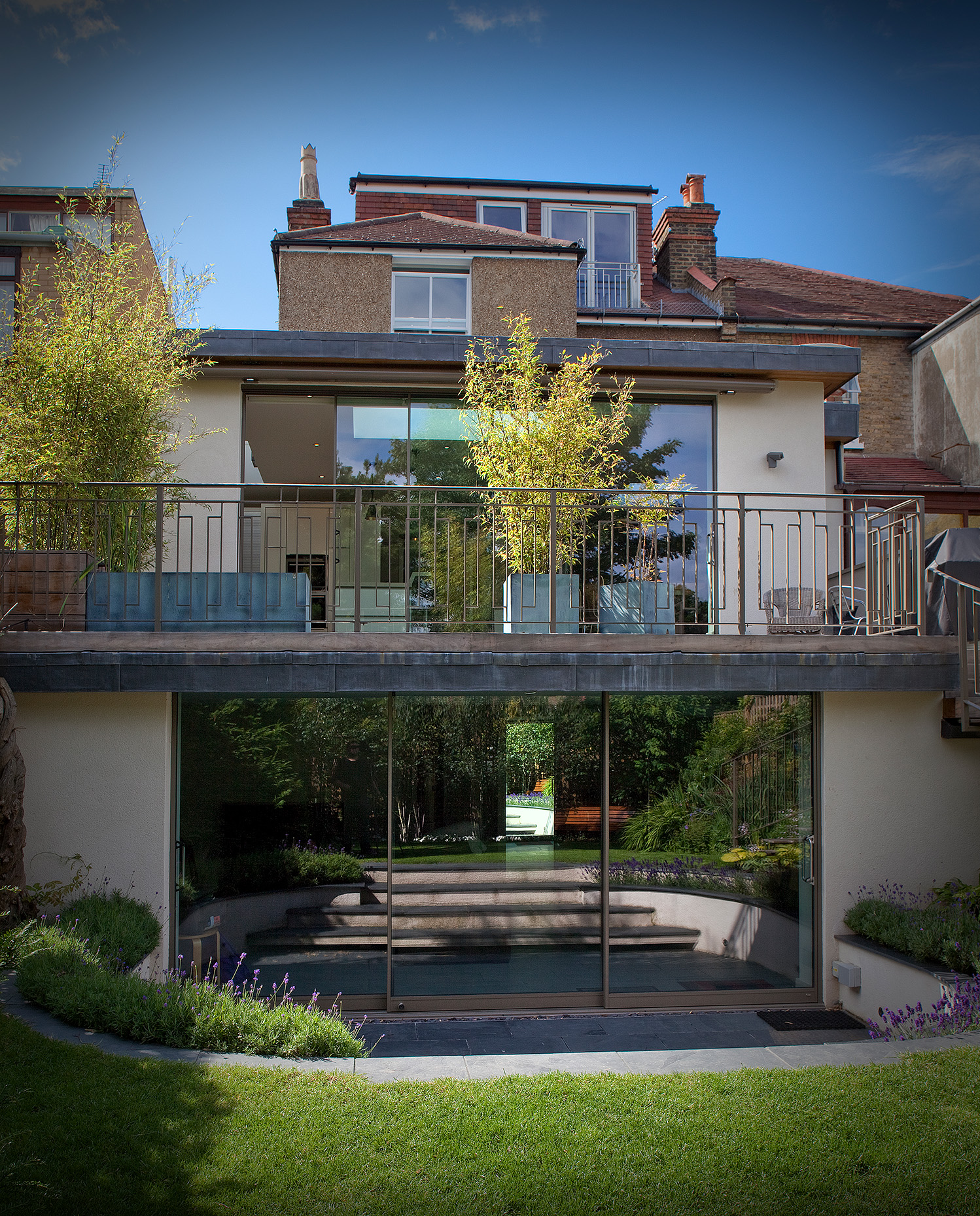 Our design ethos prioritized creating functional living areas that resonate with the family's lifestyle. We reimagined the ground floor, incorporating a spacious living area and landscaping that seamlessly blended with the sloping garden. A key feature was the introduction of external terracing that not only provided additional usable space but also took into account neighboring properties' sightlines. A versatile canopy allowed the family to enjoy the outdoor area even during inclement weather, enhancing the connection between indoor and outdoor living.